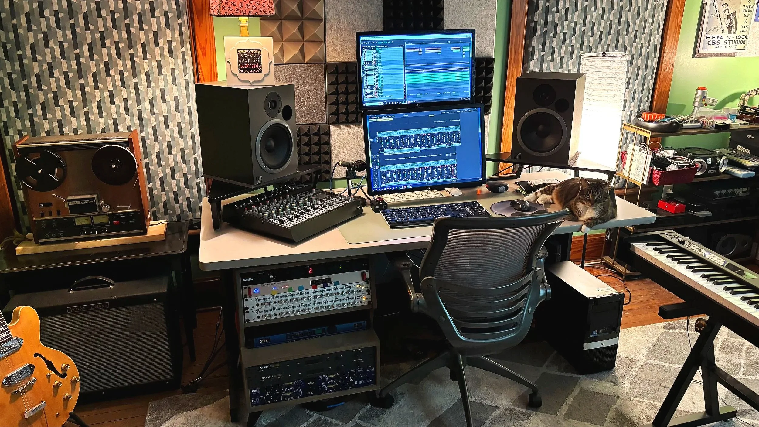 We are a digital recording studio, running 12 channels of Audent tube preamps on a local Dante ethernet network. We use a combination of Reaper for tracking, and Logic Pro X while tracking in the studio. Our microphone arsenal includes: